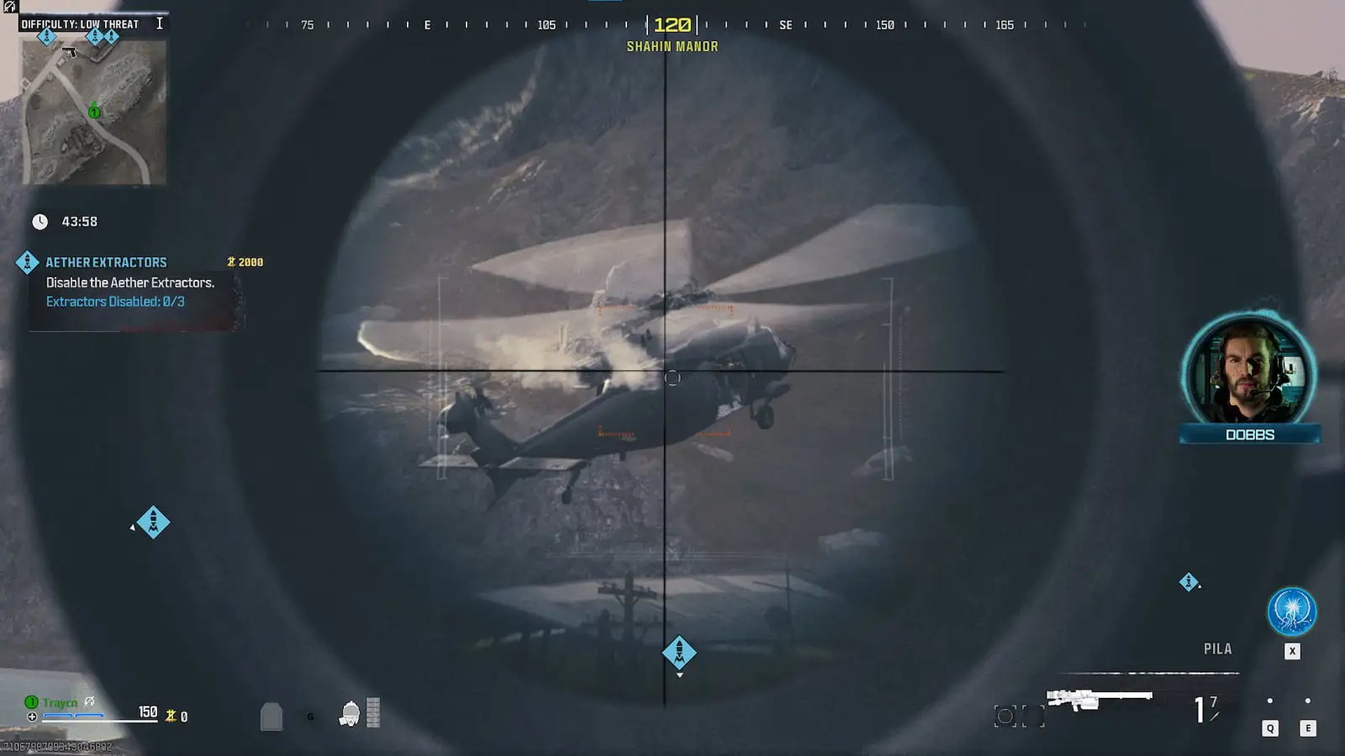 To shoot down a reinforcement helicopter for the Sabatouer mission in MW3 Zombies, you need to first start an Aether Extractor Contract and then shoot at the helicopter that arrives. There will be Mercenaries guarding the Extractors; however, don’t focus on them; instead, shoot just the helicopter. You will know the helicopter is close to being destroyed when black smoke appears around it.
