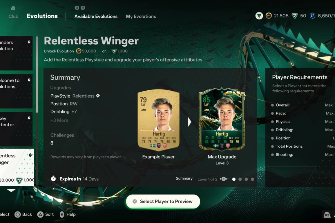 “Relentless Winger” is in the first set of evolutions, and there are hundreds of players eligible for the upgrade. Here are the top 20 players for the position that can be upgraded in EA FC 24.