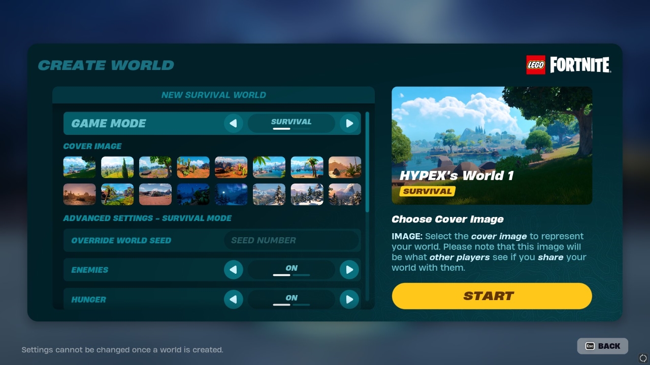 Players will also have the option to create a survival or sandbox world. They can customize elements such as the seed number, enemies, hunger, temperature, stamina, elimination, drop inventory, and friendly creatures. However, once these changes have been implemented when you create your world, you won’t be able to change them. This was all confirmed after the LEGO Group X account (formally Twitter) announced its collaboration with Fortnite.