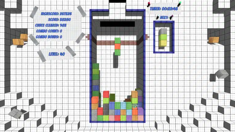 - A two-player versus mode that demands tactical skill in which players can use numerous combos to send each other blocking cubes to block the opponent’s options