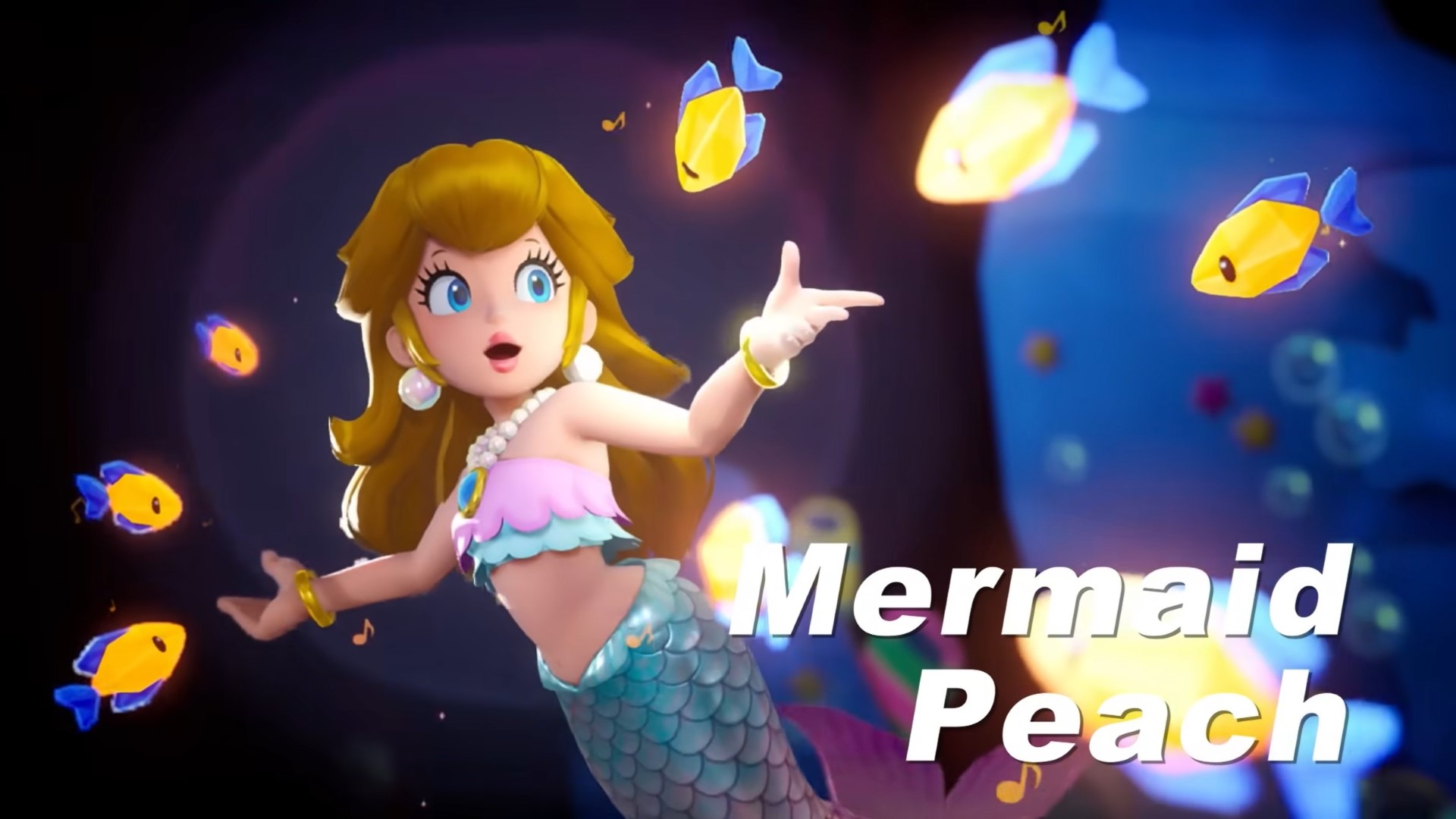 Princess Peaches Mermaid Peach’s transformation allows her to transform into a beautiful mermaid. Princess Peach will be able to use her singing voice to serenade the school of fish found around levels. Once she serenades them, she will be able to guide them around the level to solve multiple puzzles for her and get past various barriers.