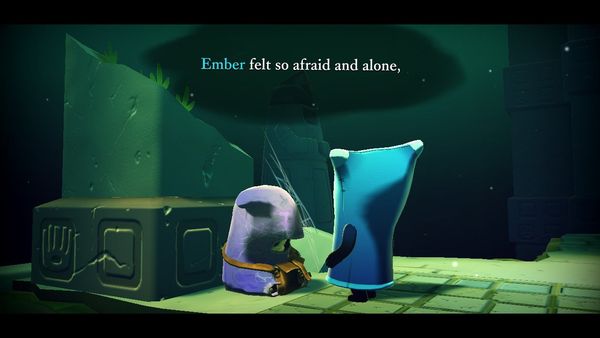 The initial area of The Last Campfire is simple and straightforward with what is required of the player. It’s dreary and ominous, further compounding the feeling of being lost. It is aided by the soft voice of the narrator as she reads the text that appears on the screen. There is no sense of hope at this point. Ember is lost, and by extension, so are we.